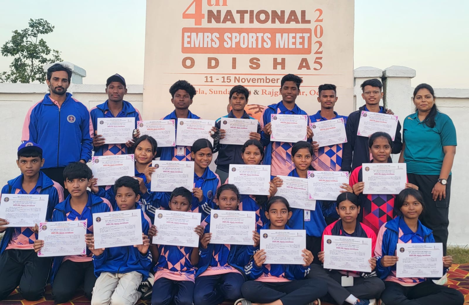 महासमुंद – 4 थीं नेशनल एकलव्य मॉडर्न आवासीय विद्यालय (EMRS) स्पोर्ट्स मीट 2025 का आयोजन दिनांक 11 से 15 नवंबर 2025 तक भुवनेश्वर उड़ीसा में आयोजित किया गया, जिसमें महासमुंद जिले के एकलव्य विद्यालय के खिलाड़ियों ने तीरंदाजी, शतरंज, कबड्डी एवं एथलेटिक्स में 11 पदक जीतने में सफलता हासिल किया। जिसमें खिलाड़ियों ने 4 स्वर्ण पदक, 02 रजत पदक, 05 कांस्य पदक शामिल हैं। एकलव्य के खिलाड़ियों ने तीरंदाजी चैंपियनशिप के 14 वर्ष बालक वर्ग में नमन मांझी ने इंडियन राउंड व्यक्तिगत स्पर्धा में स्वर्ण पदक जीता, 19 वर्ष बालक वर्ग में जयंत ठाकुर ने कंपाउंड राउंड व्यक्तिगत स्पर्धा में स्वर्ण पदक जीता, 19 वर्ष बालिका वर्ग में लिलिमा नाग ने टीम इवेंट में स्वर्ण पदक जीता। 19 वर्ष बालक वर्ग में योगेश नाग एवं टुकेश कमार ने टीम इवेंट में रजत पदक जीता। 14 वर्ष बालक वर्ग इंडियन राउंड टीम इवेंट में नमन मांझी, दिगंबर नेताम एवं उदित नारायण भोई ने कांस्य पदक जीता। 19 वर्ष बालक वर्ग व्यक्तिगत इवेंट इंडियन राउंड में योगेश नाग ने कांस्य पदक जीता। 14 वर्ष बालिका वर्ग इंडियन राउंड टीम इवेंट में कुमुदनी दीवान, डिंपल दीवान एवं रिया दीवान ने कांस्य पदक जीतने में सफलता हासिल किया। शतरंज टीम प्रतियोगिता में कुनाल ठाकुर ने स्वर्ण एवं व्यक्तिगत प्रतियोगिता में रजत पदक जीतने में सफलता हासिल किया। राष्ट्रीय कबड्डी प्रतियोगिता में छत्तीसगढ़ ने कांस्य पदक जीता जिसमें जिले से कन्हैया ध्रुव एवं अक्षय विशाल शामिक रहे। एथलेटिक्स प्रतियोगिता में कुंदन लाल दीवान ने कांस्य पदक जीतने में सफलता हासिल किया। पदक जीतने पर कलेक्टर विनय कुमार लंगेह, सीईओ हेमंत नंदनवार, अपर कलेक्टर सचिन भूतड़ा, भारतीय तीरंदाजी संघ उपाध्यक्ष कैलाश मुरारका, छत्तीसगढ़ प्रदेश आर्चरी एसोसिएशन सचिव आयुष मुरारका, खेल अधिकारी खेल एवं युवा कल्याण महासमुंद मनोज धृतलहरे, सहायक आयुक्त आदिवासी विकास विभाग शिल्पा साय, महिला एवं बॉल विकास अधिकारी टीकवेंद्र जाटवर, छात्रावास अधीक्षक डॉ. पुर्नेंद्र चंद्राकर, जिला तीरंदाजी संघ बागबाहरा जिला महासमुंद अध्यक्ष डॉ. विकास अग्रवाल, सचिव एवन कुमार साहू, कोषाध्यक्ष अरविंद छाबड़, डॉ. सुनील कुमार भोई, सोमनाथ साहू, रिंकल बग्गा, प्राचार्य एकलव्य महेंद्र टंडन, व्यायाम शिक्षक गौरव शर्मा, व्यायाम शिक्षक नीलम साहू, एकलव्य आवासीय विद्यालय भोरिंग समस्त शिक्षक स्टॉफ एवं खिलाड़ियों ने बधाई एवं शुभकामनाएं दीं।