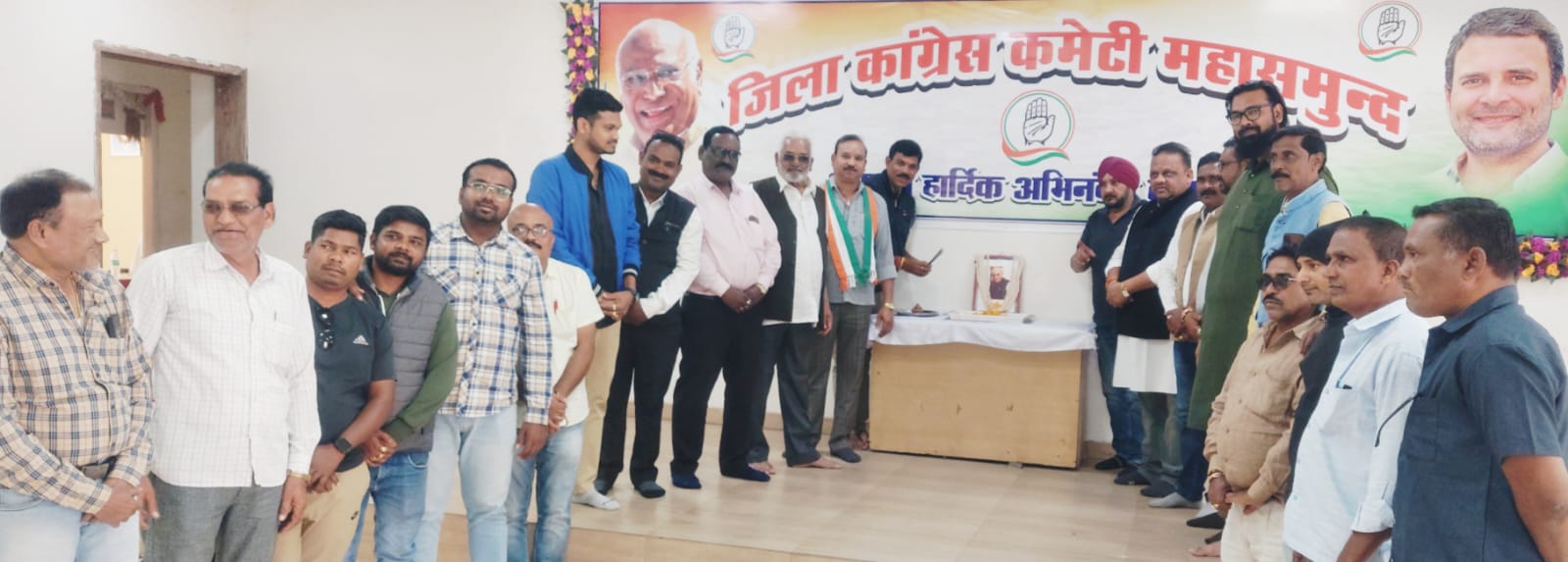 इस अवसर पर महासमुंद जिला कांग्रेस कमेटी के आलोक चंद्राकर उपाध्यक्ष जीव जंतु कल्याण बोर्ड छत्तीसगढ़, एवं संयुक्त महामंत्री प्रदेश कांग्रेस,खिलावन बघेल शहर अध्यक्ष एवं पूर्व बोर्ड उपाध्यक्ष छत्तीसगढ़ शासन, ढ़ेलू निषाद ग्रामीण अध्यक्ष,खिलावन साहू ग्रामीण अध्यक्ष,दाऊलाल चंद्राकार सदस्य बीज अनुसंधान केंद्र छत्तीसगढ़ शासन,सेवनलाल चंद्राकार,हीरा बंजारे पूर्व मंडी अध्यक्ष, प्रदीप चंद्राकर महामंत्री,गौरव चंद्राकर महामंत्री,गुरमीत चावला प्रभारी महामंत्री,अमन चंद्राकर जिला अध्यक्ष युवा कांग्रेस,हर्षित चंद्राकर महामंत्री, नीतेंद्र बैनर्जी सेवादल जिलाध्यक्ष,तुलसी साहू,भरत सिंह ठाकुर,सुनील चंद्राकर,तबरेज खान,शत्रुघन साहू,मनोहर ठाकुर,अनुराग चंद्राकर, गोपीचंद तारक,बसंत चंद्राकर,लोकेश मांझी,सिद्धांत साहू, सुरेन्द्र सिंग ठाकुर,सागर डोंगरे,प्रकाश ढीढी,भानु सोनी,पुरुषोत्तम दास कोसले एवं अन्य पदाधिकारी, ब्लॉक कांग्रेस कमेटी के प्रतिनिधि, महिला कांग्रेस, युवा कांग्रेस, सेवादल सहित बड़ी संख्या में कांग्रेस कार्यकर्ता उपस्थित रहे। सभी ने उनके बताए मार्ग पर चलने एवं कांग्रेस की नीतियों को जन-जन तक पहुंचाने का संकल्प लिया।