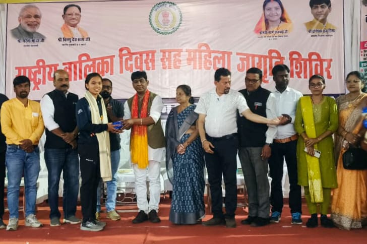 महासमुंद – महिला एवं बाल विकास महासमुंद द्वारा राष्ट्रीय बालिका दिवस सह महिला जागृति शिविर का आयोजन शनिवार को शंकराचार्य सांस्कृतिक भवन महासमुंद में आयोजित किया गया जिसमें महासमुंद जिले के बालिका खिलाड़ियों का सम्मान किया गया। तीरंदाजी खेल के राष्ट्रीय खिलाड़ी पद्मा साहू पिता वेदराम साहू बिहाझर बागबहरा, नवलीन कौर छावड़ा पिता अरविंद छाबड़ा एवं बास्केटबॉल इंडिया खिलाड़ी दिव्या रंगारी पिता विनोद रंगारी का सम्मान मुख्य अतिथि विधायक महासमुंद योगेश्वर राजू सिंहा, नगर पालिका उपाध्यक्ष देवी चंद राठी, पवन पटेल द्वारा किया गया। आयोजन में आंगनबाड़ी कार्यकर्ता, सखी सेंटर, महिला अधिकारी एवं कर्मचारी, विद्यालयीन छात्रा शामिल रहे। खिलाड़ियों को सम्मानित किए जाने पर खेल अधिकारी खेल एवं युवा कल्याण महासमुंद मनोज कुमार घृतलहरे, महिला एवं बाल विकास अधिकारी टिकवेंद्र जाटवर, छात्रावास अधीक्षक बॉल आश्रम बिहाझर डॉ. पूर्णेन्द्र चंद्राकर, डॉ. विकास अग्रवाल, पद्मा साहू के पदक जीतने पर कलेक्टर विनय कुमार लंगेह, जिला शिक्षा अधिकारी विजय कुमार लहरें, खेल अधिकारी खेल एवं युवा कल्याण महासमुंद मनोज धृतलहरे, सहायक क्रीड़ा अधिकारी अंजलि बरमाल, छात्रावास अधीक्षक डॉ. पूर्णेन्द्र चंद्राकर, जिला तीरंदाजी संघ बागबाहरा जिला महासमुंद के अध्यक्ष डॉ. विकास अग्रवाल, सचिव एवन कुमार साहू, कोषाध्यक्ष अरविंद छाबड़ा, रंजीत कौर, भोपाल सिंह बंजारा, ऋषि कपूर साहू, हिरेन्द्र देवांगन, शैलेश शुक्ला, डॉ. सुनील कुमार भोई, पिरीत साहू, संजय पैकरा, रिंकल बग्गा, सोमनाथ साहू, मुकेश वेगड़, संजय सोनवानी, कमला मांझी, बॉल आश्रम बिहाझर बागबाहरा के समस्त खिलाड़ी, प्राचार्य स्वामी आत्मानंद इंग्लिश मीडियम स्कूल बागबाहरा एवं समस्त स्टॉफ, खेलों इंडिया तीरंदाजी सेंटर एकलव्य आवासीय विद्यालय भोरिंग के समस्त खिलाड़ियों ने बधाई एवं शुभकामनाएं दीं।