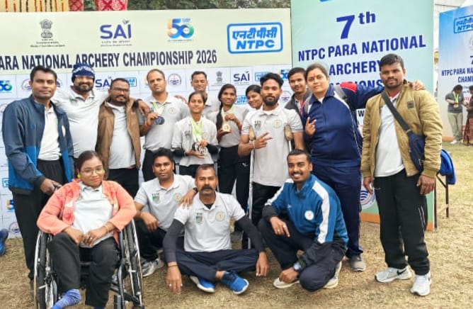 रिपोर्टर कुंज कुमार रात्रे महासमुंद – 7 वीं एनटीपीसी पैरा नेशनल आर्चरी चैंपियनशिप इंडियन, रिकर्व एवं कंपाउंड राउंड (महिला एवं पुरुष) का आयोजन दिनांक 28 जनवरी से 03 फ़रवरी 2026 तक पटियाला पंजाब में आयोजित किया गया। महासमुंद जिले से तीरंदाजी खेल में सविता निषाद ने भागीदारी कर तीरंदाजी खेल की शुरुवात किया। छत्तीसगढ़ की टीम ने 7 वी पैरा राष्ट्रीय तीरंदाजी पंजाब में आयोजित हुई जिसमें 1फरवरी 2026 को 50 मी.व्यक्तिगत स्पर्धा में कु. चंचल सोनी ने रजत पदक एवं 30 मी. में कांस्य पदक प्राप्त किया। पुरुष स्पर्धा में हरिओम शर्मा 30 मी.कांस्य पदक प्राप्त किया। मिक्स टिम स्पर्धा में तमिलनाडु को हराकर छत्तीसगढ़ ने कांस्य पदक प्राप्त किया। 2 फरवरी 2026 को ओलंपिक राउंड में चंचल सोनी ने रजत पदक प्राप्त किया, महिला टीम स्पर्धा में चंचल सोनी एवं श्यामकुमारी की टीम ने राजस्थान को हराकर स्वर्ण पदक पर कब्जा किया। छत्तीसगढ़ पैरा तीरंदाजी टीम के कोच मनमोहन पटेल के नेतृत्व में छत्तीसगढ़ के 18 सदस्यों की टीम ने 11 मेडल प्राप्त किया। महासमुंद जिले की सविता निषाद की भागीदारी में खेल अधिकारी, खेल एवं युवा कल्याण महासमुंद मनोज धृतलहरे, सुमित फाउंडेशन रायपुर का विशेष सहयोग रहा। राष्ट्रीय तीरंदाजी चैंपियनशिप में भागीदारी करने पर विधायक महासमुंद योगेश्वर राजू सिंहा, जिलाध्यक्ष भारत स्काउट एंड गाईड ऐतराम साहू, कलेक्टर विनय कुमार लंगेह, सीईओ हेमंत नंदनवार, खेल अधिकारी खेल एवं युवा कल्याण महासमुंद निरंजन साहू, संगीता सिंह, प्रदेश सचिव डीकेश टंडन, डॉ विश्वनाथ पाणिग्रही, पारस चोपड़ा, डॉ विकास अग्रवाल, डॉ पुरेंद्र चंद्राकर, जिला पैरा स्पोर्ट्स एसोसिएशन महासमुंद अध्यक्ष निरंजन साहू, सचिव तोरण यादव, विजू पटनायक, विपिन मोहंती, पुष्पेंद्र चंद्राकर, अपूर्व पांडे एवं संघ के खिलाड़ि़यों ने बधाई एवं शुभकामनाएं दीं।