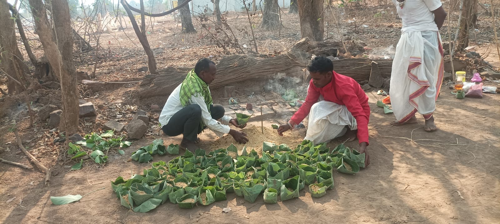 पत्तों से मिजाई किया उसके बाद काठा से नाप कर ठाकुर देवता में बांध कर पेड़ में रखा गया उसके बाद सभी किसानों को लाए गए दोनों में धान को अपने अपने घरों के खेतों में बोने के लिए दिया गया। जिसे लेकर किसान अपने अपने खेतों में जाकर मुठ लिया।इस अवसर पर राधेलाल सिन्हा, पंच राम ध्रुव,छेदू राम ध्रुव,राम प्रसाद ध्रुव,रघु नन्दन मरई,जय सिंह ध्रुव, कोमल सिन्हा, एवं गांव के सियान एवं किसान भारी संख्या में उपस्थित थे।