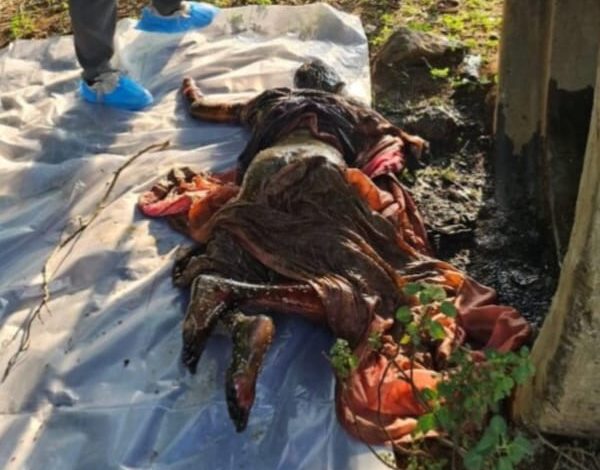 अज्ञात महिला का शव आग से जला हुआ है। जिसके कारण पहचान नही हो पाई है। अज्ञात महिला कान में टाप्स पहनी हुई है। महिला गले में मंगलसूत्र, पिंक कलर की चूड़ी, पिच कलर गोल्डन वर्क की साड़ी, पहनी है।