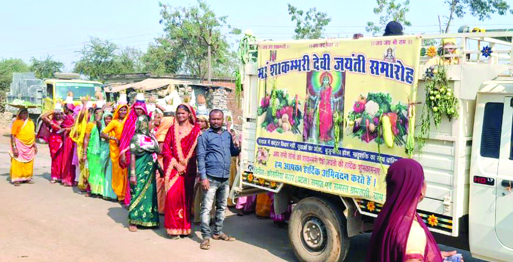 महासमुंद। ग्राम नांदगांव में कोसरिया मरार पटेल समाज ने सोमवार को समाज की ईष्ट देवी मां शाकंभरी की जयंती मनाई। इस अवसर पर समाज की महिलाओं, बच्चों एवं पुरूषों ने माता के जयकारों के साथ कलश यात्रा निकाली। कलश यात्रा पटेल समाज भवन से निकली और गांव भ्रमण के साथ सब्जियों का वितरण किया गया। समाज के प्रमुखों ने इस दौरान माता शाकंभरी की उत्पत्ति की कथा का विस्तार से वर्णन किया। कार्यक्रम में विशेष रूप से भंडारे का आयोजन किया गया।इस अवसर पर समाज प्रमुखों ने कार्यक्रम को संबोधित करते हुए कहा कि हिंदू धर्म में मां शाकंभरी देवी को मां दुर्गा का अवतार माना जाता है। पौष माह की पूर्णिमा तिथि को शाकंभरी जयंती मनाई जाती है