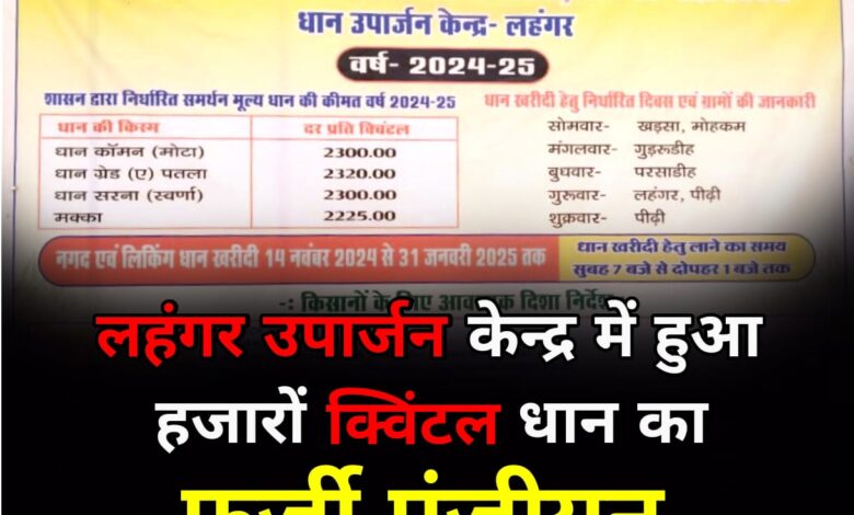 महासमुंद – छत्तीसगढ सरकार को लाखो करोड़ो का चूना लगाने मे कोई कसर नही छोड़ा लहंगर समिती ने जहा का फर्जीवाड़ा सैकड़ों नही हजारों क्विंटल तक चला गया लेकिन किसी को भनक तक नहीं लगा जबकि महासमुंद जिले मे कई उपार्जन केन्द्रों में फर्जी पंजीयन को लेकर प्रशासन ने कड़ी कार्यवाही की है लेकिन उसके बाद भी लहंगर उपार्जन केन्द्र में हुए हजारों क्विंटल का फर्जी पंजीयन में लाखो का घोटाला हुआ और फर्जी पंजीयन से लगभग 30 लाख रूपये गटक गए अपको बता दे महासमुंद जिले के लहंगर उपार्जन केन्द्र मे 23- 24 में रामेश्वर वैष्णव, सरस्वती वर्मा, हेमनत चंद्राकर, नवीन कुमार, दाऊ लाल चंद्राकर, तोषन कुमार सेन, जैसे दर्जनों किसान के नाम पर दो तरह से फर्जी पंजीयन को अंजाम दिया गया एक फर्जी रकबा तो दूसरा नियम के विरुद्ध पंजीयन जहा लगभग दर्जनों ऐसी किसान का पंजीयन किया गया जिसमें किसान की हकदार भूमि महज 2 एकड़, 3 एकड़,5 एकड़, लेकिन पंजीयन किया गया 2 एकड़ किसान वाले पंजीयन में 10 से 15 एकड़ 20 एकड़ तक बनाया गया और वही दूसरे तरह से भी खूब शासन को गुमराह कर मोटी रकम कमा लिया गया जहां ट्रस्ट तक की भूमि को नियम के विरुद्ध फर्जी पंजीयन कर लाखो की हेरा फेरी किया गया बहुत ही आसानी से दर्जनों फर्जी पंजीयन करा कर लहंगर समिती में धोखाधड़ी को अंजाम दिया गया जिसमे लगभग 100 एकड़ से भी ज्यादा फर्जी पंजीयन कर लगभग 1500 क्विंटल से भी अधिक धान बेचा गया और सरकार को लाखो रूपये का चूना लगाया गया