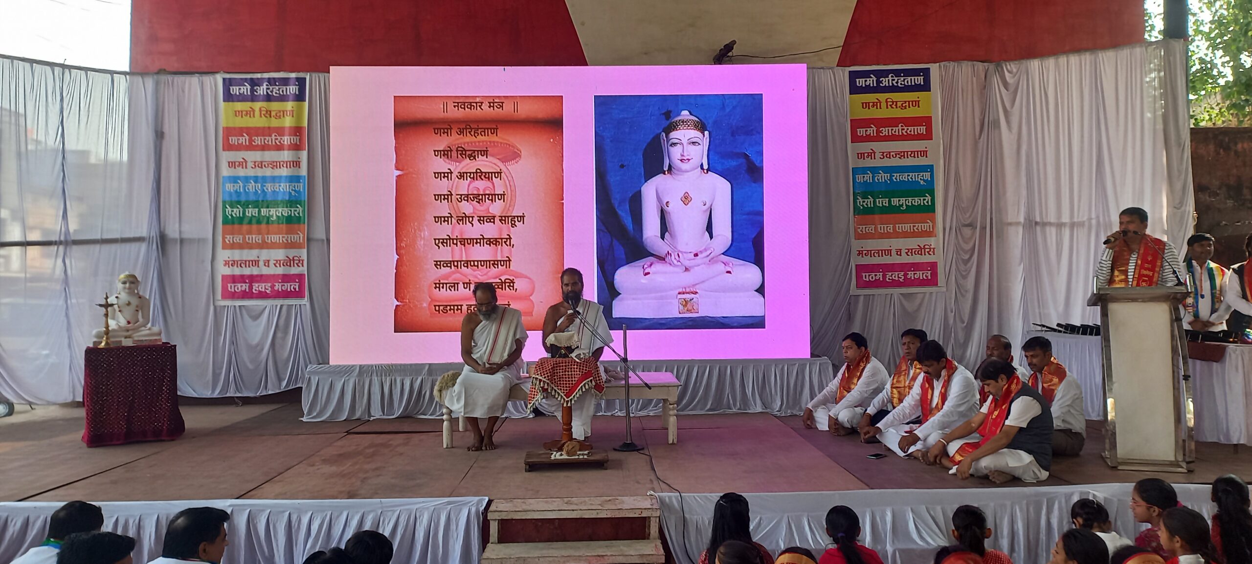 -महासमुंद सकल जैन श्री संघ के द्वारा प्रातः 8:01 से 9:36 तक सम्पूर्ण भारतवर्ष सहित विश्व के 109 देशों में एक साथ नवकार महामंत्र का सामूहिक रूप से जाप किया गया। इस क्रार्यक्रम का वर्चुअल रुप से देश के प्रधानमंत्री माननीय श्री नरेंद्र मोदी द्वारा इस कार्यक्रम में अपना भाव व्यक्त किया गया । जिसका लाइव प्रसारण पुरे भारत देश में हुआ । यह अद्वितीय आयोजन विश्व नवकार महामंत्र दिवस के रूप में मनाया जा रहा है, जिसमें जैन समाज के साथ-साथ सभी धर्म, वर्गों के लोगों शामिल हुए । विश्वशांति, आत्मकल्याण और सकारात्मक ऊर्जा का संचार करेंगे यह मंत्र