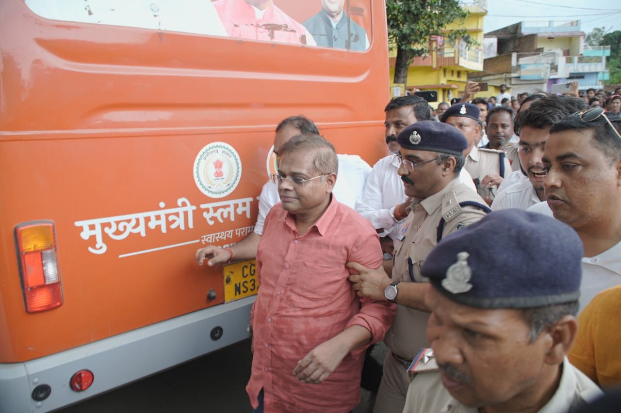 महासमुंद पेंड्रा, 25 जून 2025। छत्तीसगढ़ के पूर्व मुख्यमंत्री स्वर्गीय अजीत जोगी की प्रतिमा स्थापना को लेकर विवाद एक बार फिर उबाल पर पहुँच गया है। आज जनता कांग्रेस छत्तीसगढ़ (जे) के प्रदेश अध्यक्ष अमित जोगी के नेतृत्व में प्रदेश भर के हजारों समर्थकों ने पेंड्रा के ज्योतिपुर चौक पर विशाल धरना प्रदर्शन किया। इस दौरान अमित जोगी सहित सैकड़ों कार्यकर्ताओं ने स्वेच्छा से गिरफ्तारी दी, जिन्हें स्थानीय लाल बंगला अस्थायी जेल में रखा गया है । ज्ञात हो कि पिछले महीने स्व अजीत जोगी की प्रतिमा को रातोंरात क्रेन से हटाकर नगर पालिका परिसर में क्षतिग्रस्त अवस्था में छोड़ दिया गया था। इसके बाद अमित जोगी ने प्रशासन को एक माह के अंदर प्रतिमा पुनर्स्थापित करने का अल्टीमेटम दिया था । अमित जोगी ने धरना को सम्बोधित करते हुए