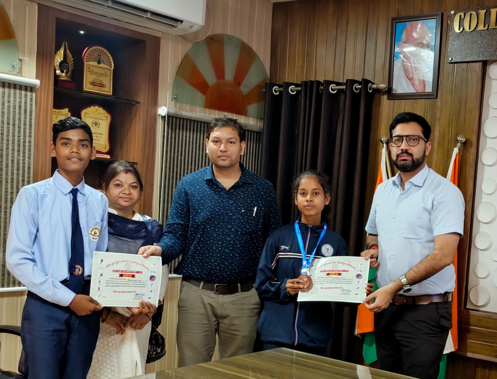 महासमुंद – 20 वीं जूनियर नेशनल सॉफ्ट टेनिस चैंपियनशिप बालक एवं बालिका 2025-26 का आयोजन दिनांक 26 से 30 जून 2025 तक सॉफ्ट टेनिस संघ हरियाणा द्वारा पंचकुला हरियाणा में आयोजित किया गया। छत्तीसगढ़ राज्य की टीम में महासमुंद जिले की मुस्कान निषाद पिता पवन निषाद ने बेहतर प्रदर्शन करते हुए राष्ट्रीय चैंपियनशिप में कांस्य पदक जीतने में सफलता हासिल की। राष्ट्रीय जूनियर सॉफ्ट टेनिस चैंपियनशिप में कांस्य पदक जीतने पर मुस्कान को कलेक्टर विनय कुमार लंगेह ने खुशी जाहिर करते हुए मेडल पहनाकर बधाई दीं