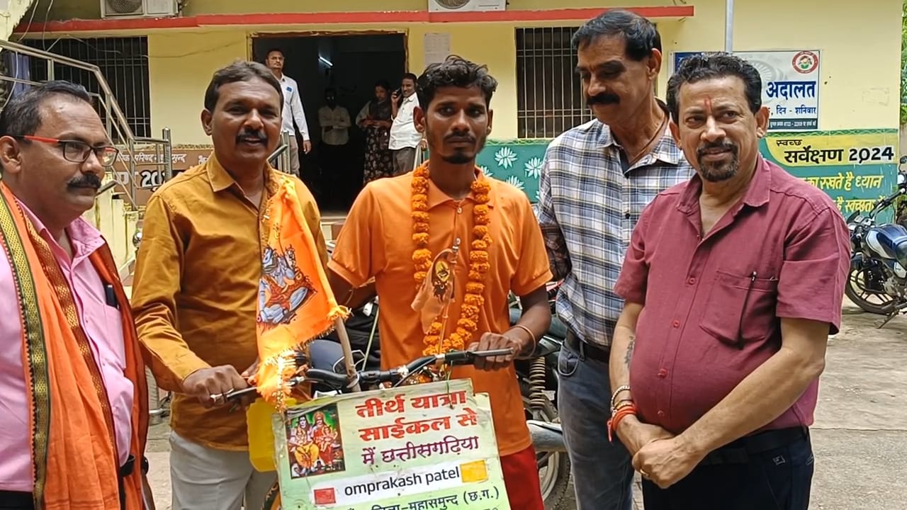 महासमुंद समीपस्थ ग्राम नादगांव के युवा ओमप्रकाश पटेल सायकल यात्रा से दो ज्योतिलिंग दर्शन उपरान्त 181 दिन की यात्रा से महासमुन्द पंहुंचने पर नगरपालिका कार्यालय में नपा उपाध्यक्ष देवीचन्द राठी भाजपा शहर मण्डल अध्यक्ष महेन्द्र सिका, नेता प्रतिपक्ष नानू भाई पार्षदगण माखन पटेल पियुस साहू चन्द्रशेखर बेल्दार भाजपा नेता शरद मराठा गौरव राठी ने फूल माला पहनाकर स्वागत किया। उल्लेखनीय है कि ओम प्रकाश पटेल दृढनिश्चय संकल्प के साथ 1 फरवरी से ज्योतिलिंग दर्शन यात्रा में निकले थे सायकल में ही सभी व्यवस्था राशन गद्दा तकिया बिजली के लिए सोलर पैनल सभी स्वयं की व्यवस्था से गये लगभग 13000 कि०मी० की यात्रा पूरी कर आत्म विश्वास से भरे हुये थे अयोध्या काशी प्रयागराज जैसे दर्जनों धर्म स्थली के साथ दो ज्योर्तिलिंग का दर्शन किया रास्ते में कही कोई परेशानी नहीं हुई। धार्मिक सायकल मात्रा से वापस कुशल पूर्वक आने पर नपा उपाध्यक्ष देवीचन्द राठी ने पटेल को बधाई शुभकामनाये देते हुये कहा कि ऐतिहासिक कदम साहस भरा हुआ हैभगवान के प्रति समर्पण की प्रेरणा पटेल से मिलती है सायकल यात्रा से क्षेत्र का गौरव बढ़ाया है उनके साहसिक कदम के लिए साधुवाद कहा इनकी यात्रा से भगवान शिव का आर्शीवाद महासमुन्द को मिलेगा सुख समृद्धि बढ़ेगी इनके पिता मनवार पटेल भी बधाई के पात्र है जो अपने 35 वर्षीय युवा सुपुत्र को सायकल यात्रा के लिए भेजे