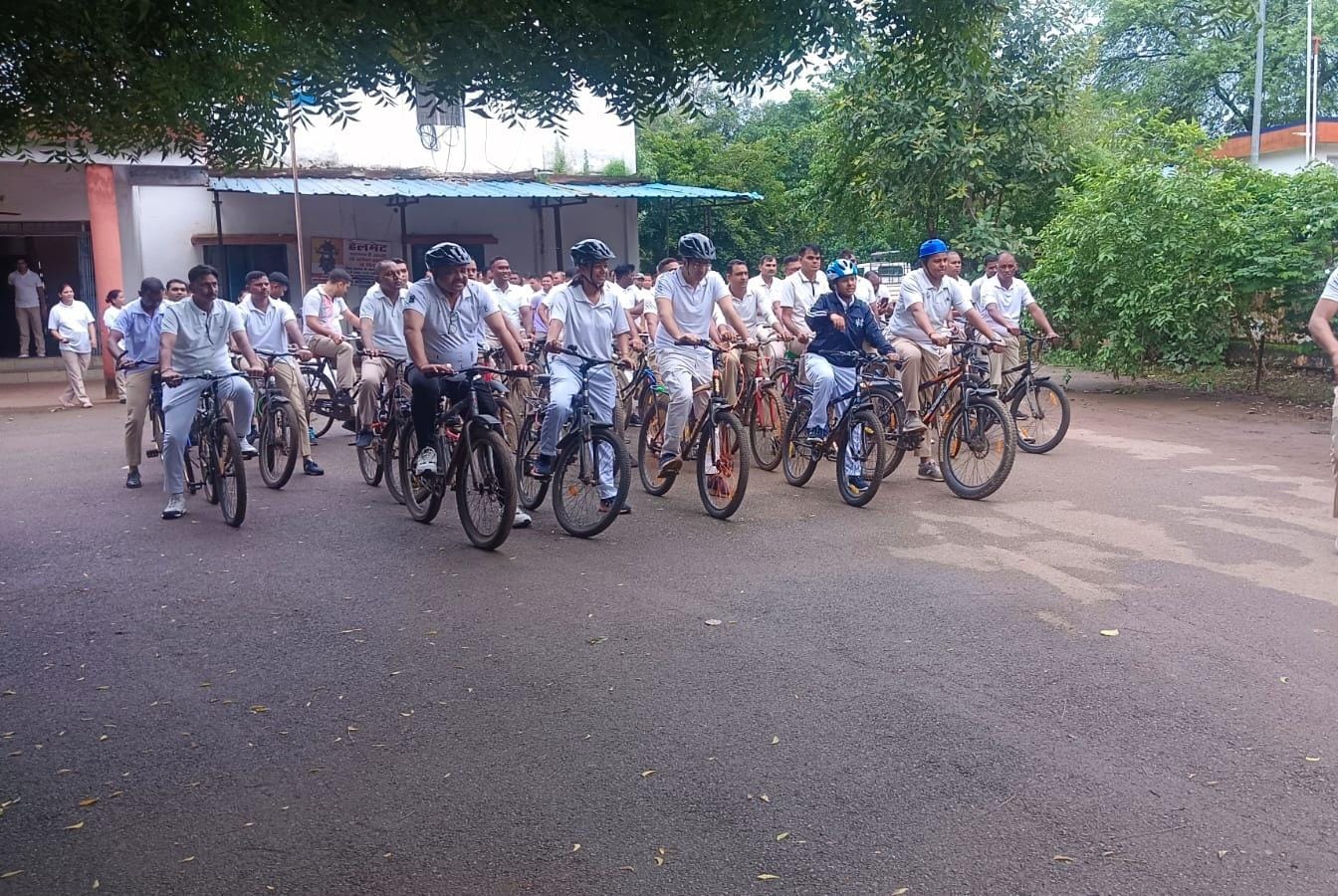 पुलिस कट्रोल रूम महामसुन्द से FIT INDIA SUNDAYS ON CYCLE रैली का आयोजन किया गया जिसमें लगभग 100 पुलिस अधिकारी/कर्मचारी उपस्थित होकर सायकल रैली निकाल कर जागरूक किया गया।