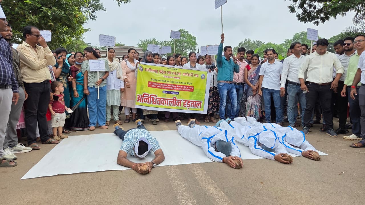 आम जनता के बीच लो में मांगों से अवग तकराया। महिला कर्मचारियों ने भी तीजा, गणेश चतुर्थी निभाते हुए धरना स्थल पर डटे रहकर आंदोलन का समर्थन किया.उधर, कर्मचारियों के अनिश्चितकालीन आंदोलन में चले जाने से उप स्वास्थ्य केंद्र, आयुष्मान आरोग्य मंदिर, सामुदायिक स्वास्थ्य केंद्र, जिला अस्पताल और मेडिकल कॉलेजों में स्वास्थ्य सेवाएँ पूरी तरह चरमरा गई हैं, जिससे आम जनता को आवश्यक स्वास्थ्य सुविधाएँ समय पर नहीं मिल पा रही हैं।कर्मचारियों का कहना है कि स्वास्थ्य सेवाएँ ठप होने के लिए वे नहीं, बल्कि शासन का अड़ियल रवैया जिम्मेदार है। कर्मचारी संघ के जिला अध्यक्ष राम गोपाल खूंटे. एवं कर्मचारियों ने स्पष्ट किया कि नियमितीकरण, ग्रेड पे और लंबित 27% वेतन वृद्धि सहित सभी मांगें पूरी होने तक आंदोलन जारी रहेगा।पूर्व में 20 वर्ष पहले सरपंच अगर न्युक्ति करता था वह शिक्षक, सचिव रेगुलर हुये है. उसके बाद शिक्षा कर्मी भी संविदा से सविलियन हुये. उसके बाद वर्तमान बी एड शिक्षक 2700 की संख्या में प्रयोगशाला शिक्षक में सविलियन किये है. तदर्थ चिकित्सा अधिकारी को 15 साल के बाद नियमितीकरण, सविलियन किये है, हम सभी एन एच एम कर्मी भी 20 वर्षो से स्वास्थ्य सेवाएं दे रहें है उनको सरकार अगर चाहे तो रेगुलर, सविलियन कर सकती. इसके लिए केंद्र सरकार से किसी भी प्रकार से बजट या ज्ञान की आवश्यकता नही है बस सरकार की इक्षा शक्ति होनी चाहिए. एनएचएम संविदा कर्मचारियों ने चेतावनी दी है कि यदि शासन जल्द ही उनकी मांगों पर लिखित निर्णय नहीं लेता, तो आंदोलन को और उग्र किया जाएगा।आज कर्मचारियों ने चार समूहों में मोदी की गारंटी, प्रधानमंत्री के घोषणा पत्र में उल्लिखित 100 दिनों में नियमितीकरण के वादे को जनता के बीच प्रस्तुत किया और बड़े नेताओं के मंचों से दिए गए वक्तव्यों को सबूत के रूप में साझा कर शासन का ध्यान आकृष्ट करने का प्रयास किया।