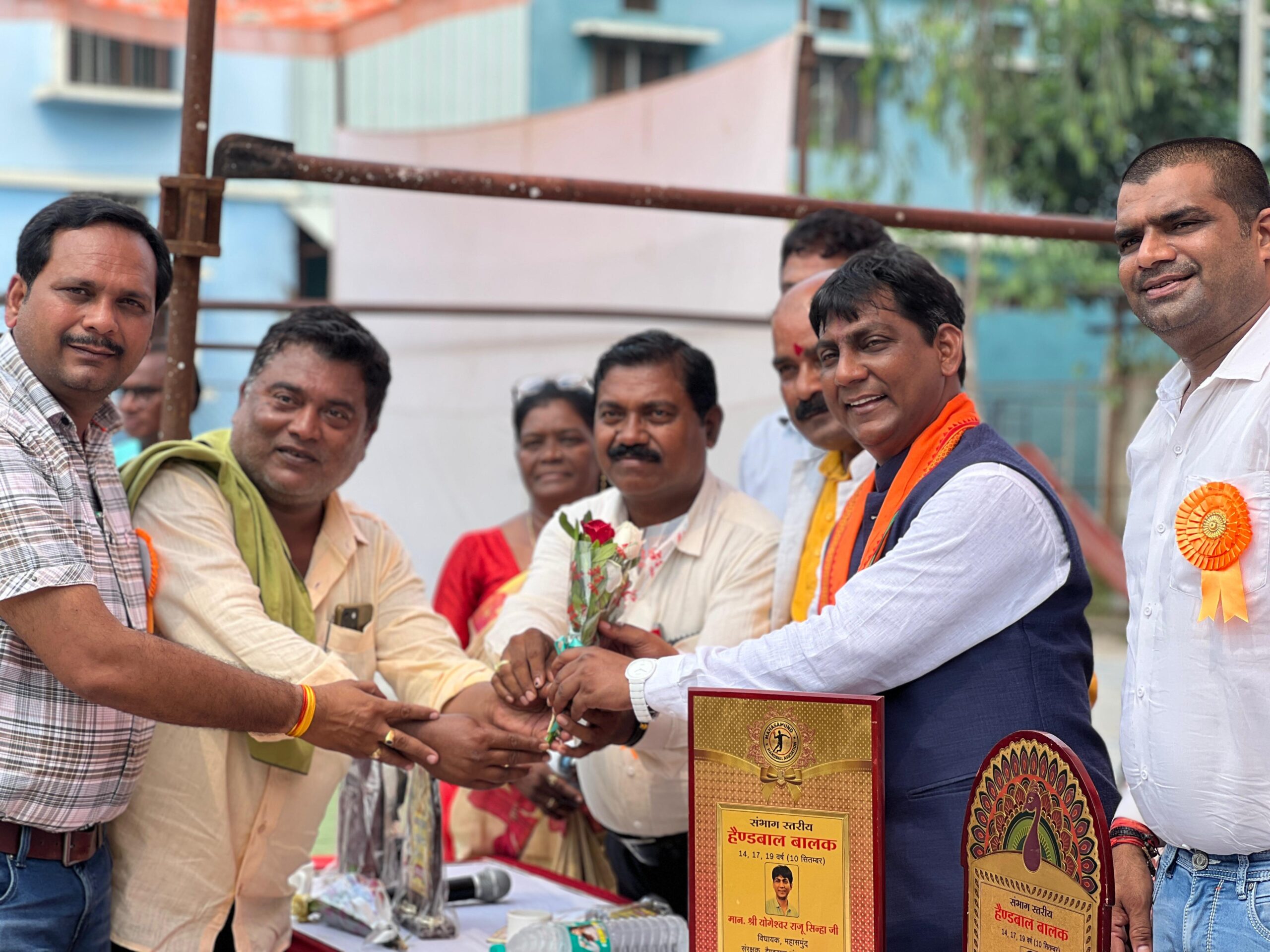 रिपोर्टर कुंज कुमार रात्रे महासमुंद संभाग स्तरीय हैंडबॉल बालक प्रतियोगिता में महासमुंद जिला तीनों वर्ग में बना बना चैंपियन। संभाग स्तरीय स्कूल हैंडबॉल बालक 14,17,19 वर्ष प्रतियोगिता का शुभारंभ 10 सितंबर को मिनी स्टेडियम हैंडबॉल ग्राउंड में किया गया।। कार्यक्रम के संयोजक सैयद इमरान अली ने बताया कि संभाग स्तरीय हैंडबॉल प्रतियोगिता मे मेजबान महासमुंद सहित धमतरी, रायपुर एवं बलौदाबाजार की टीमों ने हिस्सा लिया, जिसमे सभी वर्गों मे महासमुंद बालक टीम ने विजेता होने का गौरव हासिल किया,कार्यक्रम के मुख्य अतिथि के रूप महासमुंद के लोकप्रिय विधायक  योगेश्वर राजू सिन्हा जी, प्रदीप चंद्राकर जिला महामंत्री भारतीय जनता पार्टी महासमुंद एवं अध्यक्ष जिला हैंडबॉल संघ महासमुंद,  संदीप घोष जी,  शरद मराठा जी, विजय लहरे जी जिला शिक्षा अधिकारी महासमुंद,  नंदकुमार सिन्हा जी, सतीश नायर जी सहायक संचालक शिक्षा विभाग, सुश्री अंजलि बरमाल जिला खेल अधिकारी कमलेश यादव सुखचंद वर्मा रायपुर खिलेंद्र साहू धमतरी नारायण वैष्णव बलोदा बाजार सुनील भाई इंद्राणी भास्कर सेवन दास मानिकपुरी विशेष रूप से उपस्थित थे।।कार्यक्रम के मुख्य अतिथि  सिन्हा ने अपने उद्बोधन में खिलाड़ियों को खेल के साथ-साथ पढ़ाई करने हेतु प्रोत्साहित करते हुए आगामी प्रतियोगिता में भाग लेने हेतु अपनी ओर से अग्रिम शुभकामनाएं देते हुए सभी खिलाड़ियों की उज्जवल भविष्य की कामना की।। कार्यक्रम की अध्यक्षता कर रहे श्री चंद्राकर जी ने खिलाड़ियों को अच्छे खेल का प्रदर्शन करते हुए सरकार की खेल नीति के अनुसार योजनाओं का लाभ लेने की बात कही। और बताया कि खिलाड़ियों को उत्कृष्ट प्रदर्शन करने पर शासन के द्वारा बोनस अंक की भी पात्रता है। एवं खिलाड़ियों को उत्कृष्ट खेल का प्रदर्शन करने हेतु अपनी ओर से अग्नि शुभकामनाएं दी।इस आयोजन में 4 जिलों के 150 हैंडबॉल प्रतिभागियों ने अपना खेल प्रदर्शन का कौशल दिखाया।। इस प्रतियोगिता में जो चयनित खिलाड़ी हैं वह राज्य स्तरीय होने वाले प्रतियोगिता मे बालक टीम महासमुंद से रायपुर संभाग का प्रतिनिधित्व करेंगे।।। कार्यक्रम को सफल बनाने में प्रमेश खरे खेल अधिकारी रावतपुरा विवि, रुपेश महिलांग, कपिल पेंदरिया,आशीष कुशवाहा, टिकेश्वर साहू, मनीष चंद्राकर,वैभव मानिकपुरी सोनिया बंदे, आदित्य,सोनू, सागर यादव, प्रशांत,मतिहास दास,सिबतेंन रजा महासमुंद जिला हैंडबॉल संघ के वरिष्ठ खिलाडी उपस्थित थे